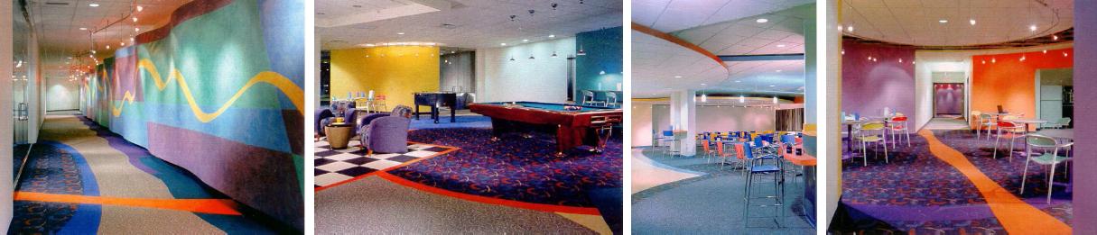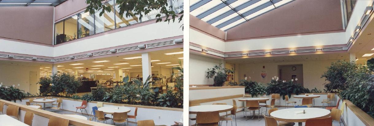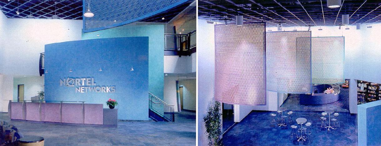 Nortel Networks, Billerica, MA. 330,000 square foot engineering and R&D space.*Diagonal circulation organized into streets, monuments and town squares. Spaces include game rooms, break rooms and cafeterias. Design, construction documents and construction administration.