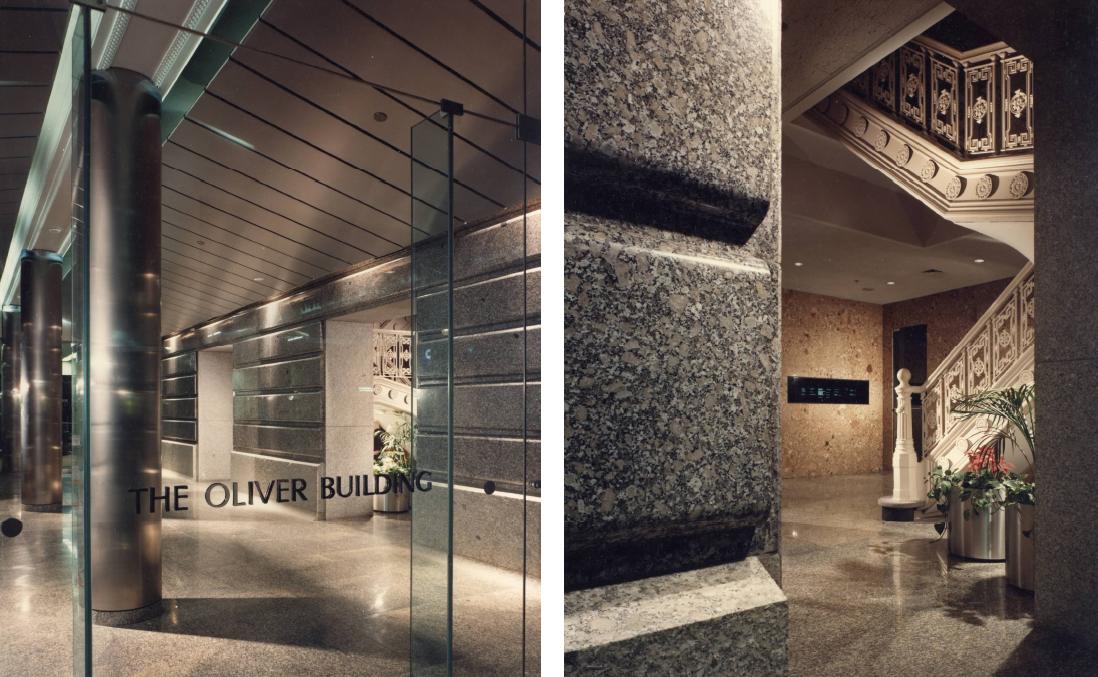 Oliver Building, Boston, MA. New entry, lobby, core enlargement and fit up of 16 floor historic office building.* Design, construction documents and construction administration.